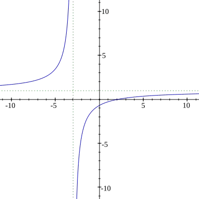 Rational etc. These are functions that contain fractions with polynomials in the numerator and denominator. The graphs have a horizontal and a vertical asymptote. As x approaches , the y values approach 0 (the x−axis).