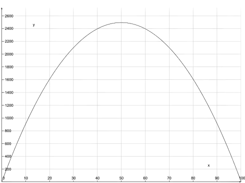 Example 6 You have 100 feet of fence with which to enclose a plot of land on the side of a barn. You want the enclosed land to be a rectangle. a. Write a function to model the area of the plot as a function of the width of the plot. b. Graph the function using a graphing calculator. c. What size rectangle should you make with the fence in order to maximize the area of the rectangular enclosure? d. Explain the significance of the x−intercepts. Solution: The plot of land will look like the picture below: