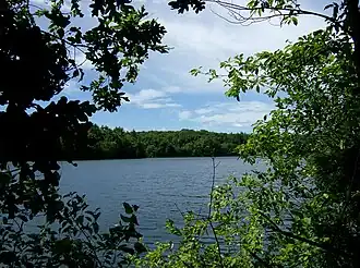 Kettles are another feature we associate with glaciers. When a glacier retreats, we often observe that it leaves a large block of ice behind it. The outwash sediment from the retreating glacier will then build up around the orphaned block of ice. When it has melted, which may take many years, the result is a depression in the outwash plain: this is a kettle. If it lies below the water table, it will fill up to produce a small lake with outwash banks.