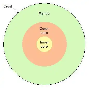 Earth can be divided by composition into the crust, mantle, and core, as shown to scale in the diagram to the right.