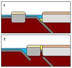 In picture 2 the microcontinent has collided with the continent, incidentally squeezing up the sediment in the accretionary wedge between them. In this particular example, this has produced not one but two terranes: the former island and the former sedimentary wedge. The former microcontinent is now the left end of the continent, and the oceanic crust is now subducting beneath that.
