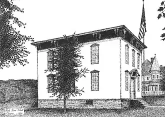In 1847 It was decided to raise $400 to build a new school on the site of the school they already had. The trustees were instructed to sell the old school and apply the money toward the new one. This was on the 19th of October. On the 26th, it was decided to reconsider the vote of Oct. 19th and purchase a new site form Col. Deming for $50. This would be on the northeast corner of his wood lot and in front of his horse barn. they were to spend only $300. Nothing more was done until September 1, 1854 when a special meeting of all Freeholders and inhabitants was called. It was then resolved to purchase land from Col. Deming on the lot adjoining the Baptist Church (on North Street) This was to contain one-half acre of land. Resolution was adopted. James Ackerman and Eri Deming were drafted to draft plans for the new school.