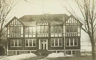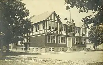 In the mid-teens, more space was needed and new rooms were added to the front of the school. A local architect, Floyd Robinson, designed the Tudor style addition.
