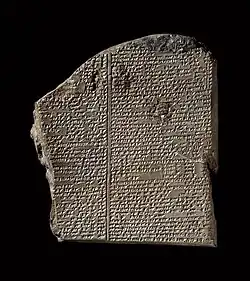 The Deluge tablet of the Epic of Gilgameshin Akkadian, circa 2nd millennium BC.