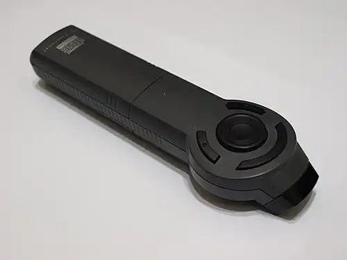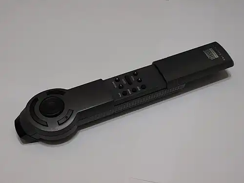 CDI 910 front with controller attached. The controller has its direction stick unscrewed. -