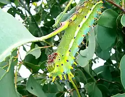 A Swallowtail caterpillar on a branch of keffir lime tree -