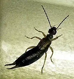 Earwig is the common name given to the insect order Dermaptera. With about 1,800 recorded species in 10 families, the order is relatively small among Insecta. Earwigs are, however, quite common globally. There is no evidence that they transmit disease or otherwise harm humans or other animals, despite their nickname pincher bug.