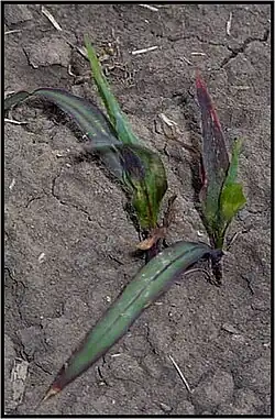 • Injury symptoms of sicklepod plant treated with an EPSP synthase Inhibitor.
