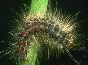 The gypsy moth, Lymantria dispar, is a moth in the family Lymantriidae of Eurasian origin. Originally ranging from Europe to Asia, it was introduced to North America in the late 1860s, where it has been expanding its range ever since.