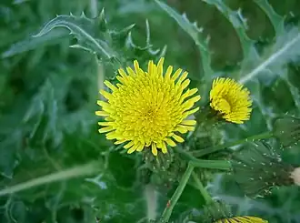 Sow thistle (less commonly hare thistle or hare lettuce) is the common name for a number of related annual herbs in the Genus Sonchus, the ancient Greek name for these plants. Sow thistles are common roadside plants, and while native to Eurasia and tropical Africa, they are found almost worldwide in temperate regions. In some regions sow thistles are known as "milk thistles", although a true milk thistle is placed in a different genus.
