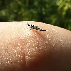 Thrips are generally tiny (1 mm long or less) and are not good flyers, although they can be carried long distances by the wind. In the right conditions, many species can explode in population and swarm everywhere, making them an irritation to humans.