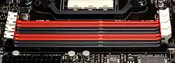 Next, you will need to install your RAM (random access memory). Find the RAM slots on your motherboard; they will look something like the picture on your left. To install the RAM modules, first push on the levers (white plastic in the picture) on either side of the DIMM socket, so that they move to the sides. Do not force them, they should move fairly easily.