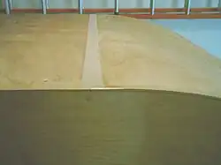 When you pull the tape it will leave the nice straight edge. You can continue on with masking tape and more Bondo as required to cover the entire seam. After you are finished, let the Bondo fully cure. You can then carefully sand the bondo smooth so that it looks like a moulding. You can try painting it if you like but try it on a test piece first. Its really better just to leave it plain. Later you will apply urethane varnish over the trailer and over the Bondo seams.