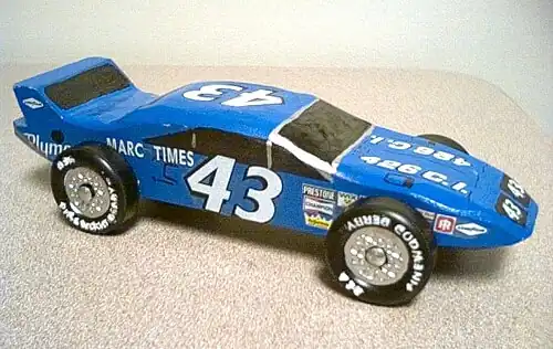 Pinewood derby racer modeled on Richard Petty's famous Plymouth Superbird