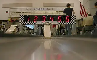 Pinewood derby cars are made from kits containing a wood block, plastic wheels and metal nails for axles. The completed cars race down a multi-lane track powered by gravity and slowed by friction and wind resistance. Pinewood Derby and related races are run by Boy Scouts of America's Cub Scouts, Awana Grand Prix, Royal Rangers, Shape N Race, Kub Kar Rally, Royal Ambassadors, and others.