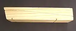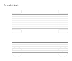 The first step in designing your car is picking the wheelbase. If the rules of your race do not specify that the original wheelbase or axle slots must be used, it is often possible to improve car performance using the longest wheelbase. WIth a long wheelbase, the weight can be moved further to the back while still remaining forward of the rear axle and errors in wheel alignment will affect the long wheelbase car less since it has a larger turning radius for a given angular wheel deflection. The standard pinewood derby wheelbase is about 4.5 inches. The extended wheelbase is 5.75 inches with the wheels 5/8 inch from the end of the 7 inch block.[2] Even when the standard wheelbase is required by the rules, it may be possible to move the rear axle back by cutting off the back of the block, leaving 5/8 inch between the axle slot and the back of the block, and gluing the removed piece to the front of the car.
