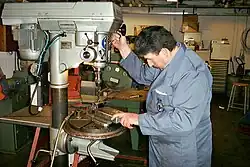Axles can be installed in slots or holes. Unless installation in the original slot is required, a drilled axle hole will make wheel and axle alignment easier. If the axle slots must be used, you should still drill a pilot hole in the slot to assure that it is the correct size. The holes should be drilled with a #44 bit (0.086 inch decimal equivalent) for a 0.087 inch axle. A #43 (0.089 inch decimal equivalent) can be used for oversize axles or pre-1999 car kits.[8] The bit should be held in a drill press or, if one is not available, an axle hole jig can be used.