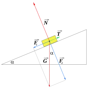 The normal force is the force of the body mass on the axles. On a track with slope of , the total normal force of all load-bearing axles is