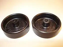 Light wheels are advantageous because a large fraction of the kinetic energy of the car is contained in the rotational energy of the wheel (see the Physics chapter). Light wheels mean less rotational energy in the wheels and therefore more linear speed. True wheels mean less wobble and straight tracking. You want the wheel to remain in the middle of the axle and have the minimum contact with the car body and axle head.