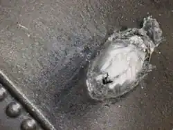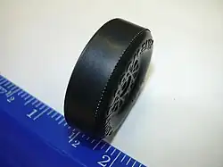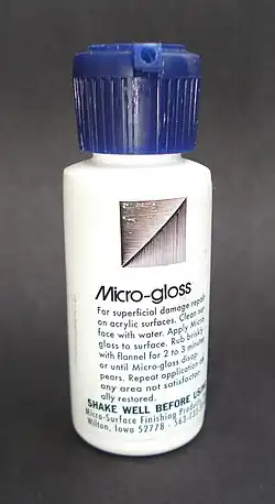 Polishing the inner surface of the hub can reduce friction between the wheel and axle. Bore polishing kits consist of a cylindrical tool that mounts in the chuck of a drill and has two prongs that hold a pipe cleaner. A liquid abrasive with 1 μm (0.001 mm) aluminum oxide abrasive crystal is used to polish the bore.[4] The polish can be used with the pipe cleaner holding tool or with a pipe cleaner or cloth alone. The abrasive is capable of removing scratches down to 5 μm (micromesh 4000) The aluminum oxide abrasive also makes an excellent polish for the car's paint.