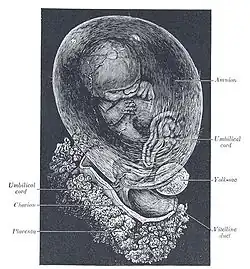 Amnion: An embryonic membrane that encircles a developing fetus and contains amniotic fluid.