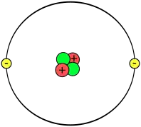 The nucleus is made up of positively charged protons, and neutrons, which have no charge but about the same mass as a proton.