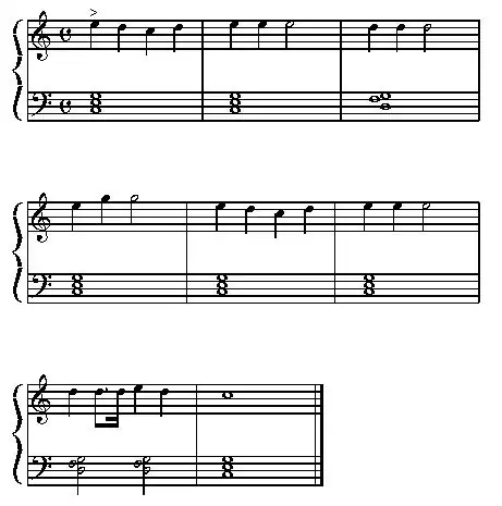 Melody is the most difficult of the characteristics to define. While there is no good formal definition of "melody," it is loosely, the “song of the song,” or the “hummable” part of a piece. A melody is comprised of multiple musical “sentences,” called phrases. These phrases are then made up of steps and leaps. Steps are short risings or fallings of the melody (e.g. an A to a B or an F to an E). Leaps are longer risings or fallings of the melody (e.g. an A to a C or an F to a D).