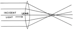 Focal Point: the point on the principal axis through which a ray parallel to the principal axis passes through after refraction in the lens.