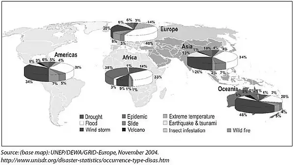 Figure 3: Regional Distribution of Disasters: By Triggering Hazards, 1995–2004