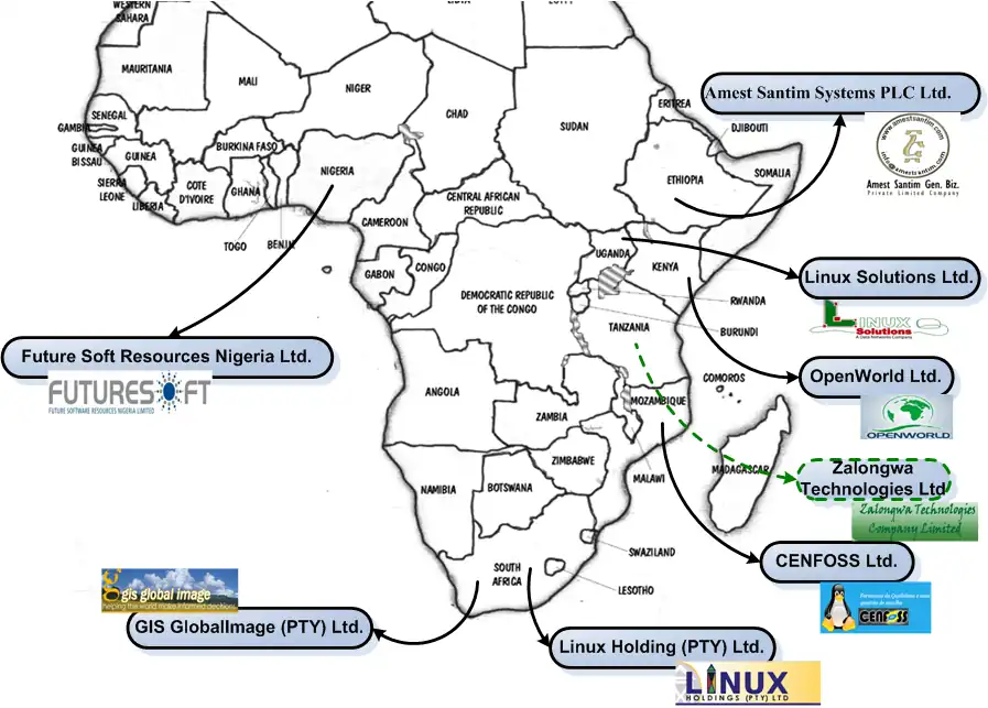As FOSS becomes more mainstream the variant business models will encompass a business service that is a combination of FOSS and Commercial offerings. This module provides case studies to demonstrate how companies in eight African countries are already profiting from the benefits inherent in FOSS. The map below shows the location of the companies covered.