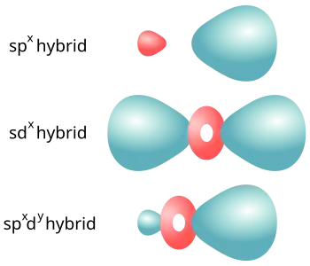 In certain transition metal complexes with a low d electron count, the p-orbitals are unoccupied and sdx hybridisation is used to model the shape of these molecules.[9][11][10]