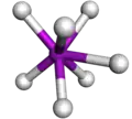 Steric numbers of 7 or greater are possible, but are less common. The steric number of 7 occurs in iodine heptafluoride (IF7); the base geometry for a steric number of 7 is pentagonal bipyramidal.[6] The most common geometry for a steric number of 8 is a square antiprismatic geometry.[14]:1165 Examples of this include the octacyanomolybdate (Mo(CN)4−8) and octafluorozirconate (ZrF4−8) anions.[14]:1165 The nonahydridorhenate ion (ReH2−9) in potassium nonahydridorhenate is a rare example of a compound with a steric number of 9, which has a tricapped trigonal prismatic geometry.[9]:254[14]