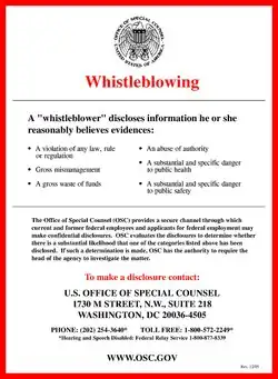 Federal employees could benefit from the Whistleblower Protection Act,[21] and the No-FEAR Act (which made individual agencies directly responsible for the economic sanctions of unlawful retaliation). Federal protections are enhanced in those few cases where the Office of Special Counsel will uphold the whistleblower's case.