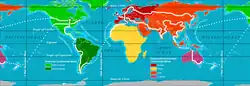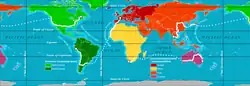 Each one of these regions to be ridden through is typically an individual country or, for large continental countries: a state for the USA (ex.: Florida, bordering the East Atlantic front); a province for China or Canada (ex.: British Columbia, bordering the East Pacific front); a state or a territory for Australia (ex.: New South Wales bordering the West Pacific front); a republic, an oblast, a krai, or an okrug for Russia(ex.: Primorsky Krai, bordering the West Pacific front).