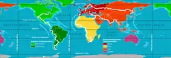 - Central to Western USA > Crossing of the Pacific Ocean > Russia (Siberia and Europe) > Europe > Northwest Africa > Crossing of the Atlantic Ocean > South America > Central America > Central USA