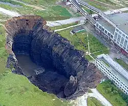 • Enormous emptiness under the city as a result of mine developments which have already led to technogenic earthquakes measuring 4-5 points in Solikamsk in 1995 and to earth failures on the place of mines of the First and Third potash plants in Berezniki. Oil pumping and the pressure of the Kama reservoir increases the probability of man-made earthquakes. Uralkali carried out laying of mine emptiness with help of waste, but this laying costs too expensive. A earth failure happened in the territory of First Potash plant in Berezniki in 2007, there was a flooding of mine emptiness by water. Mines of this First Potash plant exist directly under the city Berezniki that can causes earth failures in the territory of the city and plants. Therefore the city administration and the federal ministry of natural resources have begun construction of houses and resettlement of inhabitants from dangerous districts of the city Berezniki to the residential district "Usolye" on the right coast of Kama River under which there are no mine emptiness. Actually, the new city Berezniki is under construction on the right bank Kama River today as the old city Berezniki on the left river bank Kama collapses gradually because of emptiness under the old city. The EuroChem company has constructed new potash plant in 2018 and this company has received finished products already. The Uralkali company continues to build the Fifth potash plant. Thus two new mines will be built soon instead of two flooded mines (First and Third potash plants). Construction of new and new potash plants will be continued In the city of Berezniki and Solikamsk in the future. The bypass railroad is constructed which has passed far away from the territory of a earth failure.