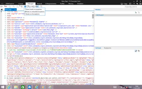 - This option stops Developer Tools to break on any exception.
