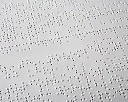 Next, once the data has been input into the computer using any of these assistive input devices, assistive output devices come into play. These devices include screen readers, which read aloud all the text information on the screen; Braille displays act similar to Braille keyboards as they continuously convert screen output into Braille form. Lastly, there are also Braille printers—sometimes known as Braille embossers—which transfer and print computer generated text into embossed Braille output. Therefore, instead of the traditional ink, the embosser creates raised dots on a page for the visually impaired to read.[33]