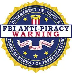 The illegal copying and distribution of movies and TV shows is called film piracy. The rate at which people commit film piracy has been growing exponentially since 2004. This is most likely due to the fact that online peer-to-peer file sharing has become a lot easier.[10] According to the Motion Picture Association of America (MPAA), film piracy causes an estimated loss of $18 billion dollars per year worldwide. This statistic is estimated because the MPAA has to determine how many people would have actually watched the film if it weren’t for free, or at a discounted price. Ever since 2004, authorities have been pushing to reduce film piracy. In 2005 the Family Entertainment and Copyright Act was put into place. This act makes recording a movie in a theatre illegal in the United States. Besides laws, there have also been things like visual FBI Anti-Piracy Warning Seal’s added to DVD’s. This seal is shown when the DVD is played, and before the actual movie starts. However, this doesn’t always effectively stop a pirate from stealing the movie.[11] There are many software programs used by authorities and private companies to prevent the illegal trade of pirated movies. This software is able to monitor websites that host peer-to-peer file trading. If a company’s film is being misused over the internet, the software is capable of sending infringement notices and collecting important data. All of this information could be used to build a court case against the violator.[12]