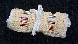 If the border is too difficult at first, do what I did and just use a spare piece of yarn to hold the roll together. This should keep crochet hooks of nearly any size organized, although extreme oversized hooks and Tunisian crochet hooks won't fit.