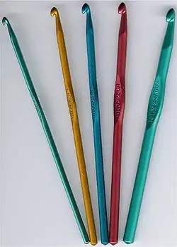 Differently sized crochet hooks