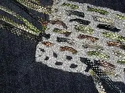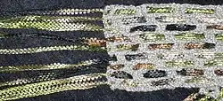 The yarn is 88% bamboo, which looks like raw silk and behaves something like rayon.