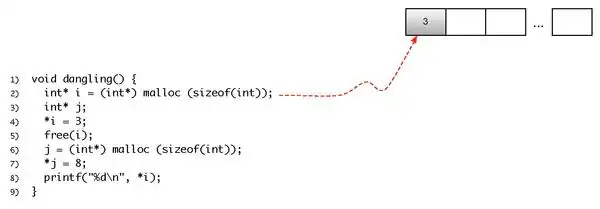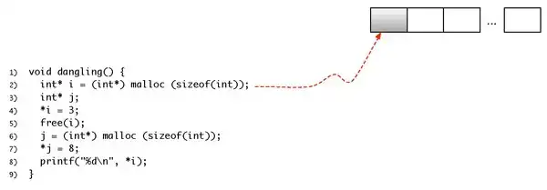 The following program contains a dangling pointer. Try to inspect it to find the problem.
