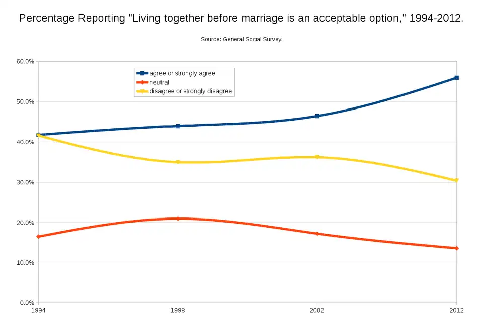 - ↑ USA Today. July 17, 2005. Cohabitation is replacing dating. http://www.usatoday.com/life/lifestyle/2005-07-17-cohabitation_x.htm