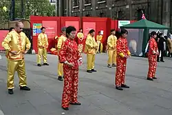 Falun Gong practitioners in London; Falun Gong is a new religious movement.