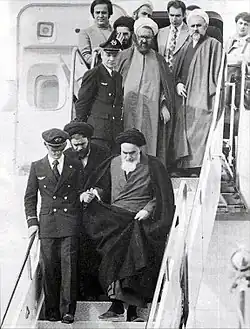 On February 1 1979 Ayatollah Khomeini returned to Tehran to rapturous greeting by several million Iranians. Khomeini had flown back to Iran in a chartered Air France Jumbo Jet.[118] Not only the undisputed leader of the revolution,[119] he had now become what some called a "semi-divine" figure, greeted as he descended from his airplane with cries of ‘Khomeini, O Imam, we salute you, peace be upon you.’[120] Crowds were now known to chant "Islam, Islam, Khomeini, We Will Follow You," and even "Khomeini for King."[121]