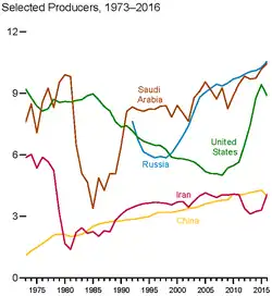 - ↑ "According to World Bank figures, which take 1974 as 100, per capita GDP went from a high of 115 in 1976 to a low of 60 in 1988, the year war with Iraq ended ..." (Keddie, Modern Iran, 2003, p.274)