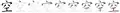 | 訓読み: そら、あ(く)、あ(き)、あ(ける)、から、す(く)、す(かす)、むな(しい) |