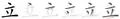 | 訓読み: た(つ)、~た(つ)、た(ち)~、た(てる)、~た(てる)、た(て)~、たて~、~た(て)、~だ(て)、~だ(てる) | ||
