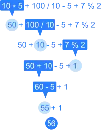 System.out.println(10*5 + 100/10 - 5 + 7%2);